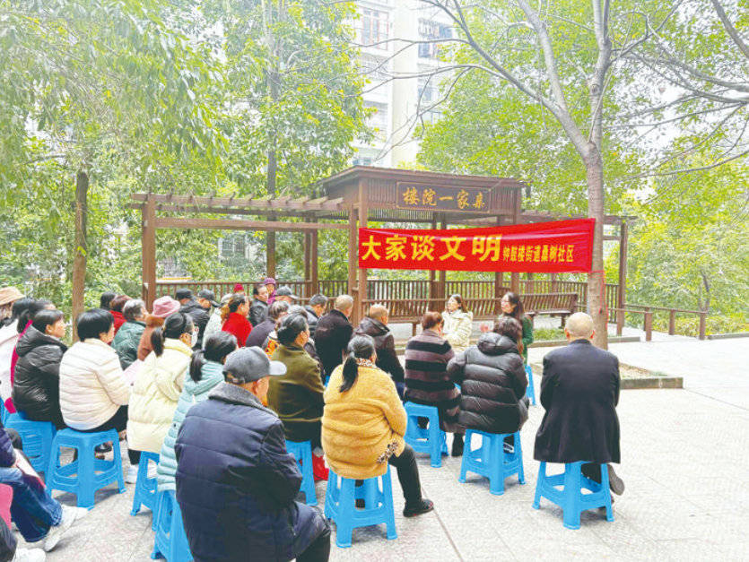 “废物分类能够更详尽”“健身器材需求定时保护”“应该多安排邻里活动”……每月最终一个周五的“咱们谈文明”活动,已成为桑树社区的品牌。会议室里,居民们围坐一圈,畅谈对文明社区的了解和主张。议事完毕后,参会者总会随手拿起东西,将评论的内容当即实践——或是整理刚刚说到的卫生死角,或是擦洗公共设备。